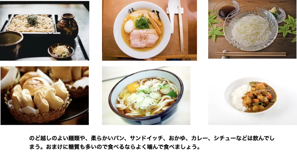 そしてそれらを飲み込んでから次の食事を口に運ぶ癖をつけましょう
