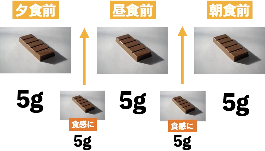 1日5回、毎食前と食間に5gずつ食べると、脂肪の燃焼やコレステロール値の改善に良いです
