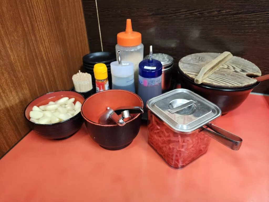 ニンニク、紅生姜、辛子高菜が食べ放題だよ^^