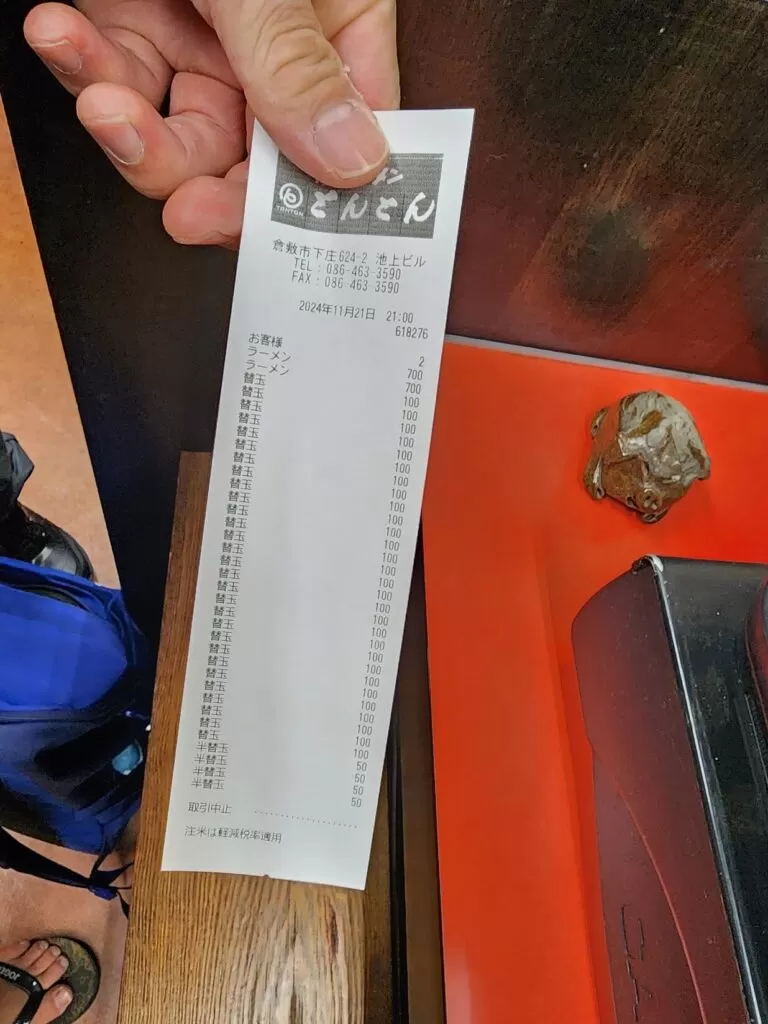 チャレンジ企画以外でこんなにアホみたいに替え玉する奴なんてなかなかいないので店員さんもバグってレジを打ち間違えてこんなんなりましたwww