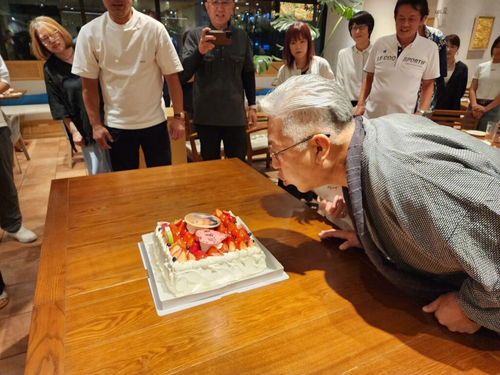 無事ロウソクの火を消し終える志琉会会長