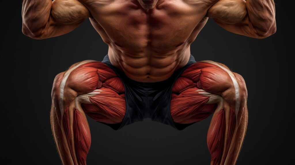 太ももの前側に位置する大腿四頭筋は、膝を伸ばす動作に不可欠な人体最大の筋肉の一つです
