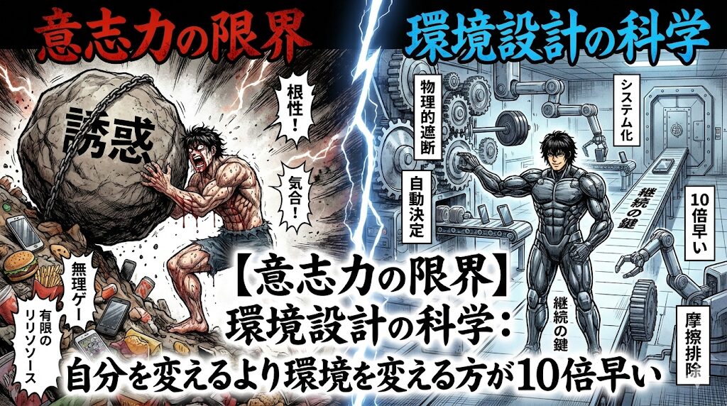 - 【意志力の限界】環境設計の科学:自分を変えるより環境を変える方が10倍早い