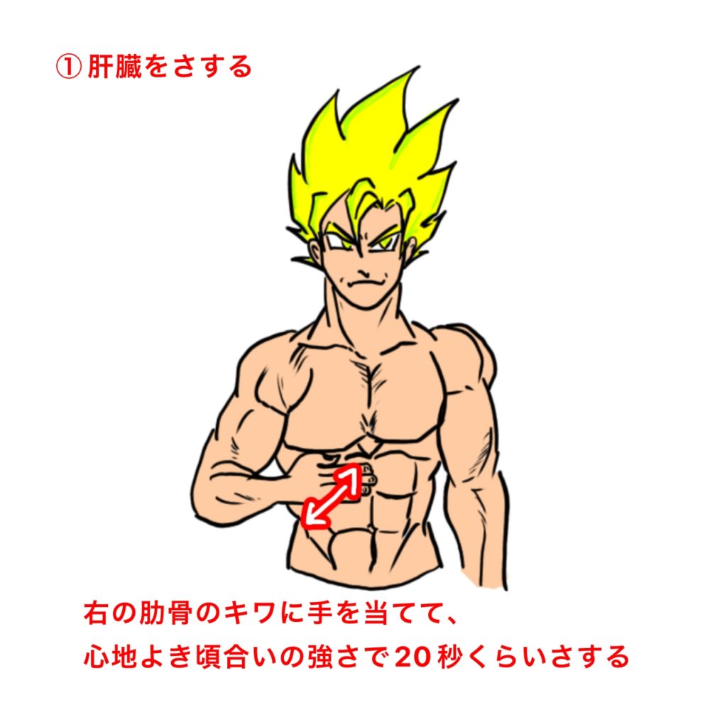 肝臓マッサージは以下の3つで構成されていてトータル1分くらいで終わります