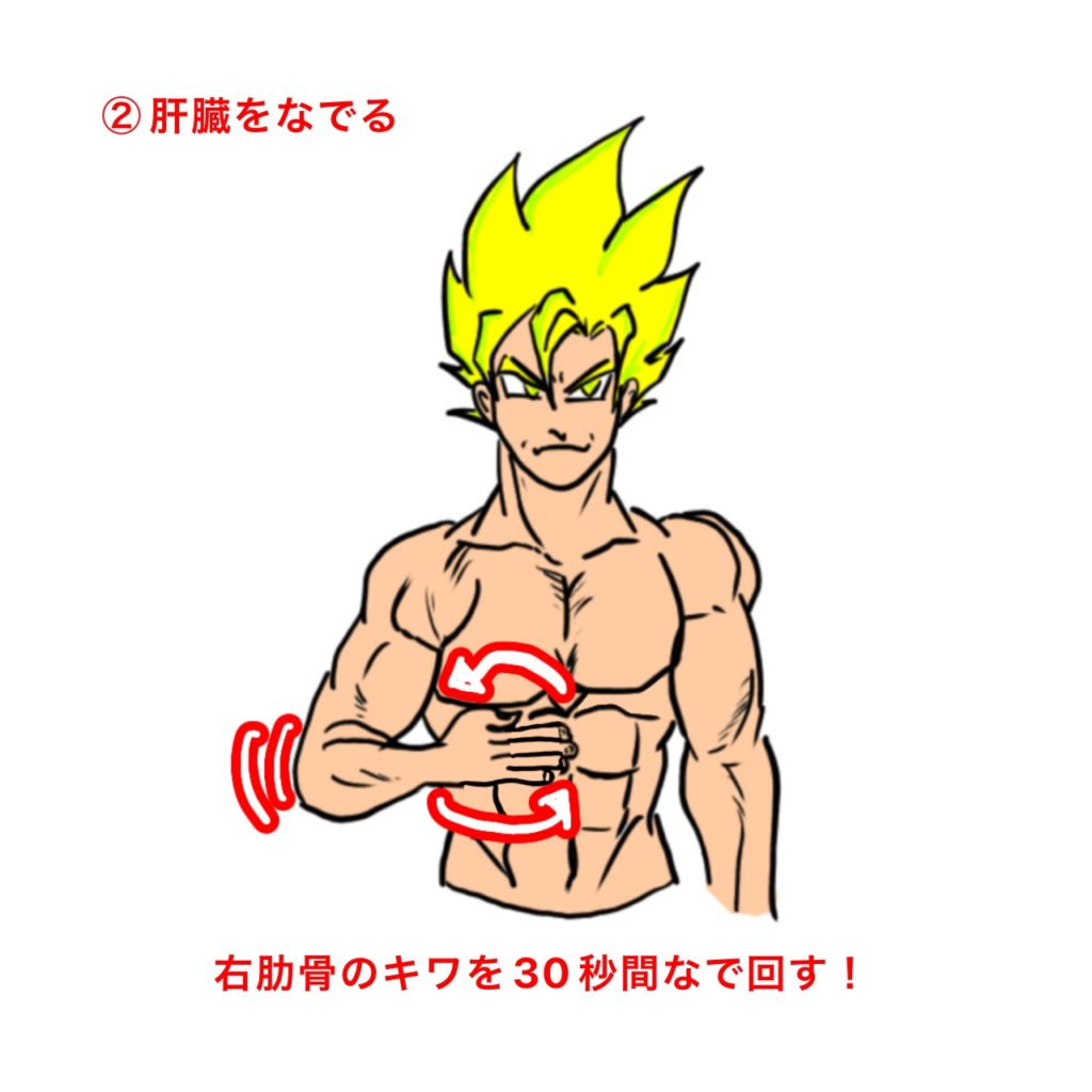 ①肝臓をさする
